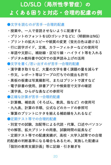 ・LD/SLDのよくある困りと対応・合理的配慮の例 ...20